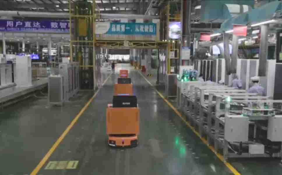 为车载冰箱物流配送打造的智能解决方案,,,,包含产中物流通过潜伏举升AMR搬运至线边,,,产后成品物流智能仓储,,,,流程包含产中物流智能齐套入库,,,,线边安灯叫料AMR智能配送至线边,,,成品入库、、、、出库,,,通过无人堆高车机器人,,,,智能仓储管理替代人工作业管理,,,实现更高存储、、、、更高效率、、更具柔性化的解决方案。。。