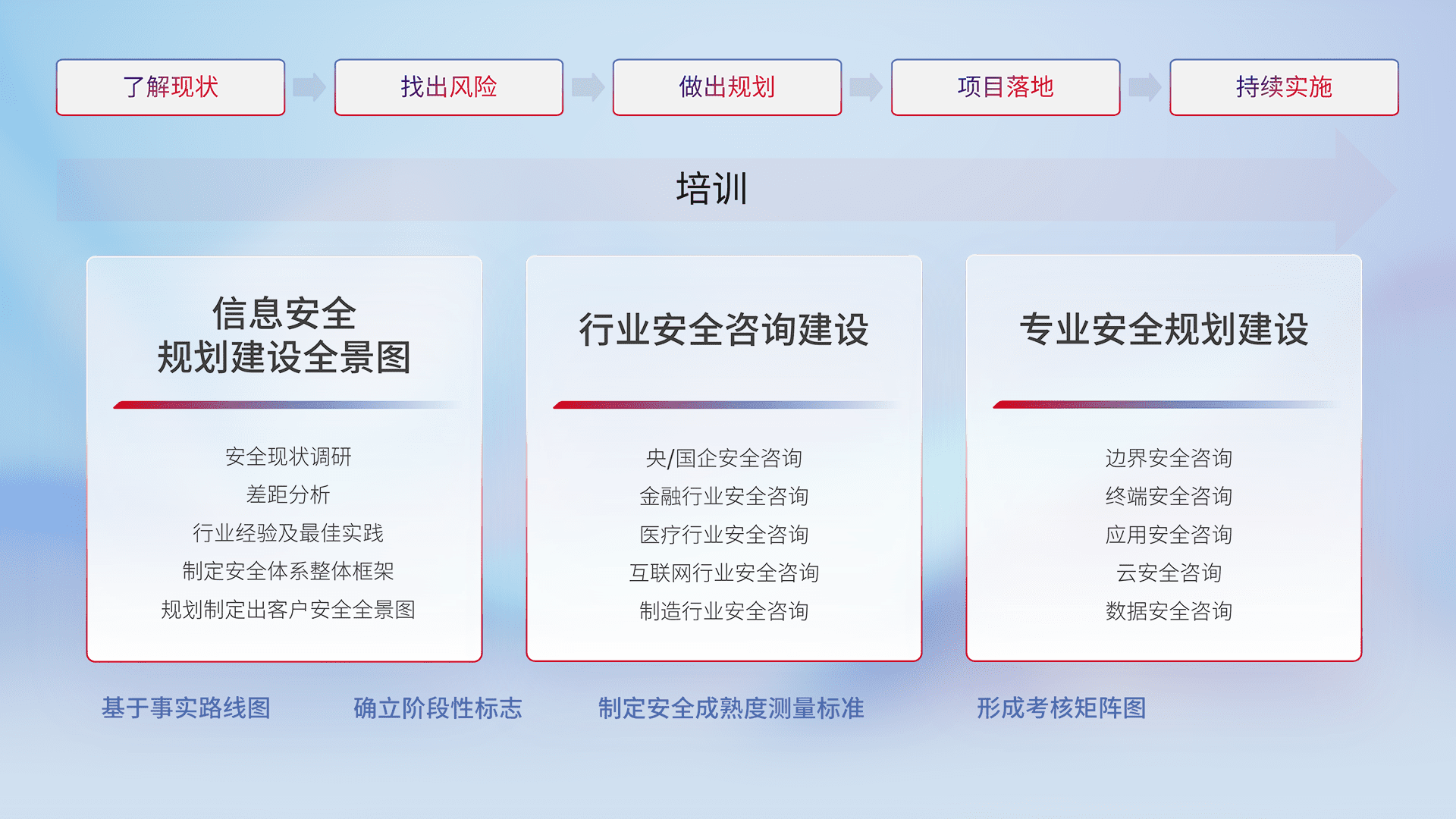 通过专业的法律咨询解读、、合规架构体现、、、、差异化解决方案、、、、测试实施支持等服务,,,,为客户量身打造等保合规体系。。。